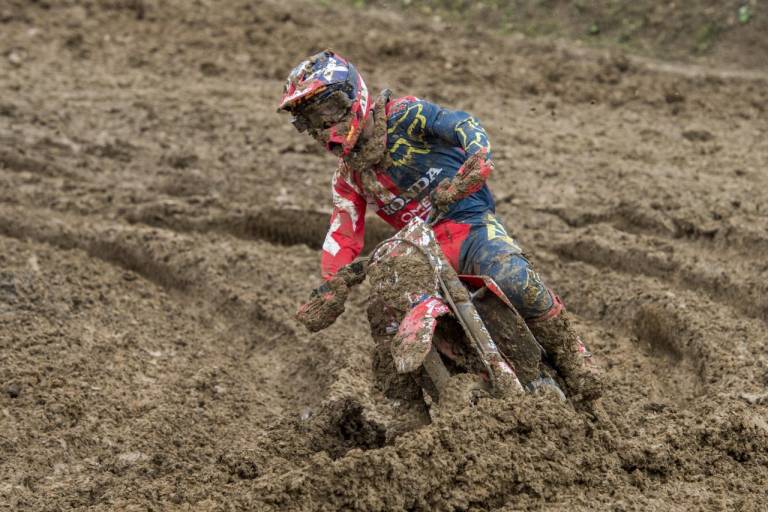 Tim Gajser je šel na dirko neobremenjen. Čeprav je tokrat dirkal brez spremstva očeta in trenerja Bogomirja, ki se je na zadnjem treningu pred dirko poškodoval, ga je to še dodatno motiviralo. Zanj je bilo pomembno to, da dirko konča pred Francozom Romainom Febvrejem in obdrži skupno peto mesto v prvenstvu. V prvi vožnji se je uspel Gajser izogniti vsem blatnim pastem in je prevzel vodstvo. Vodil je celotno prvo vožnjo, letošnjega svetovnega prvaka Cairolija je prehitel več kot za krog. Tudi Irt je bil uspešen, osvojil je osemnajsto mesto.