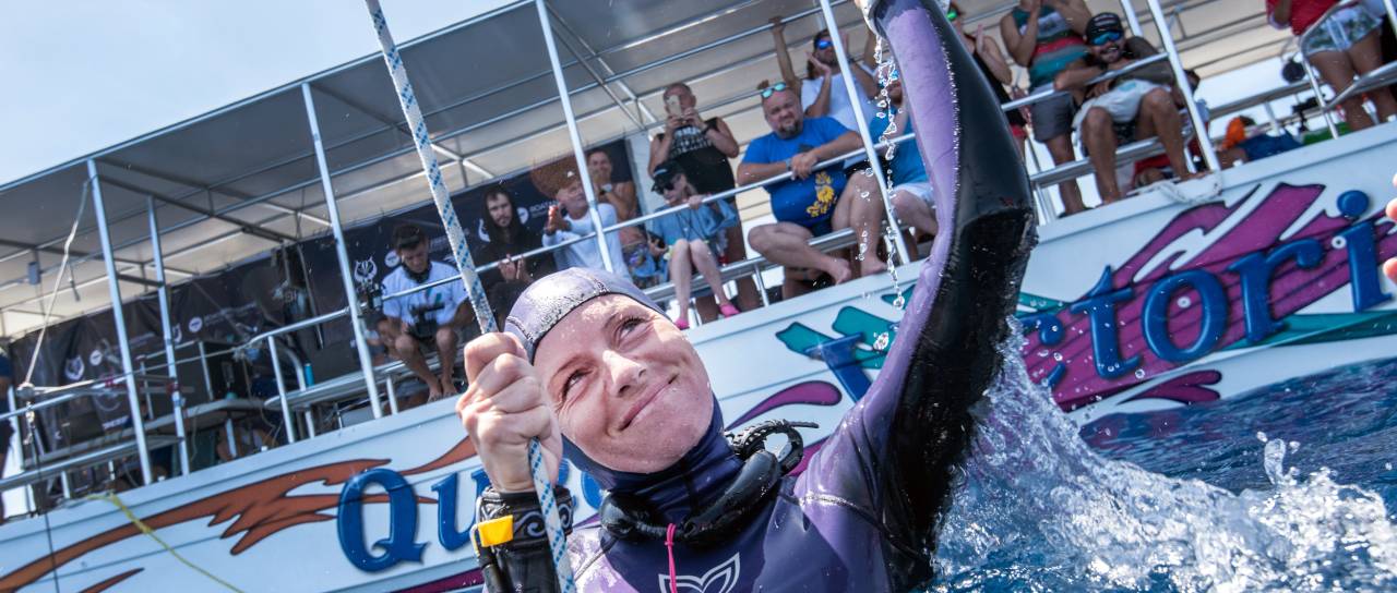 Rekord v potapljanju z monoplavutjo si s 113 metri deli z Italijanko Alessio Zecchinni.