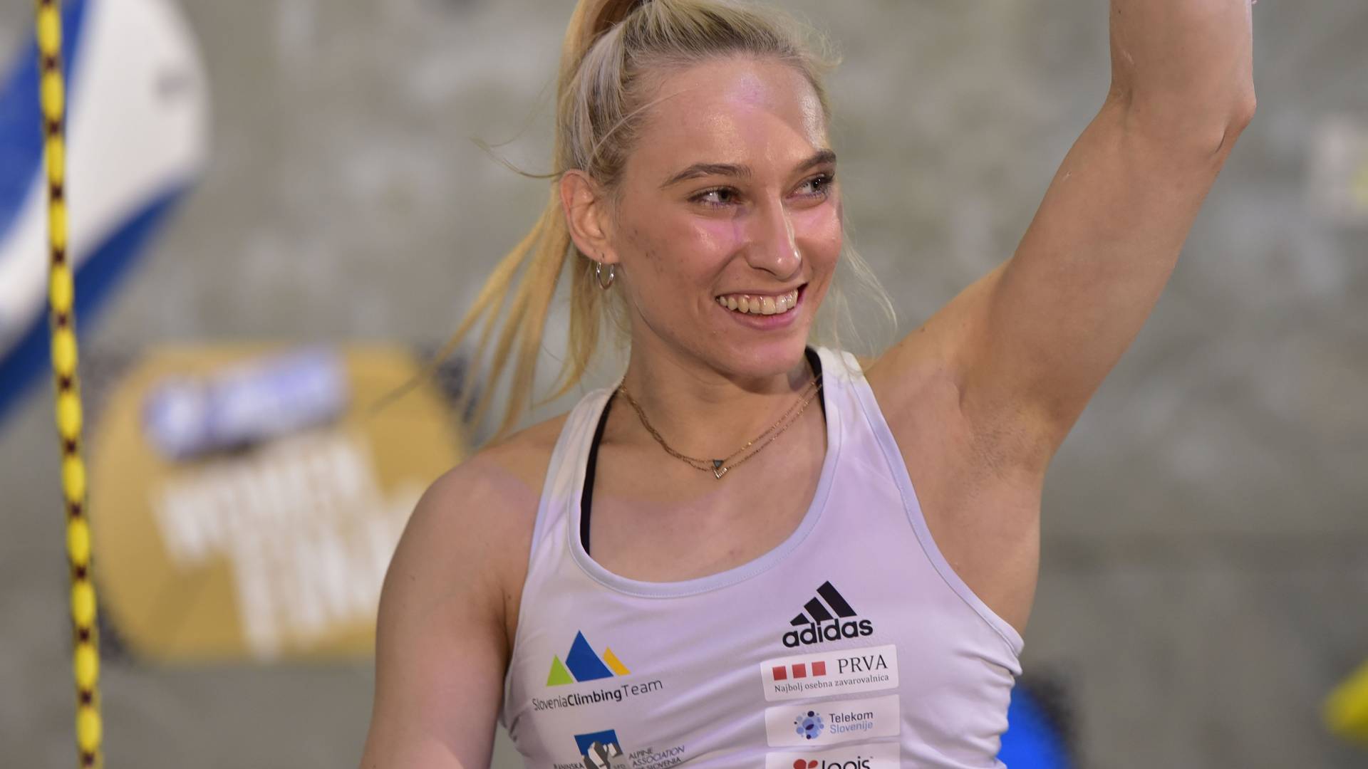 Za zadnji balvan je potrebovala več poskusov, a na koncu le splezala povsem do vrha ter je edina med 20 tekmovalkami zmogla vse štiri balvane.
