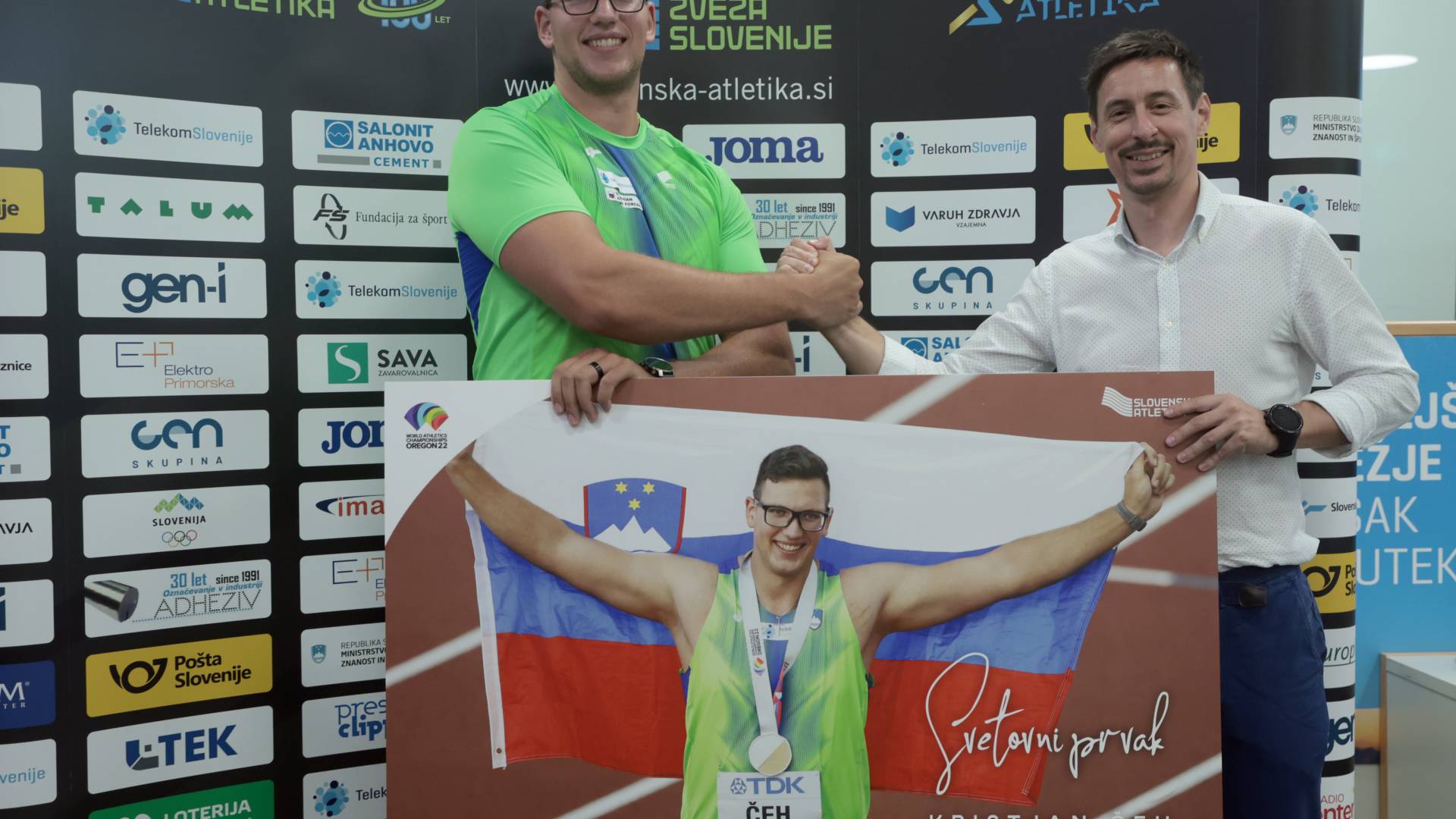 Zlatemu Kristjanu Čehu za uspeh tudi čestitke in nagrada Atletske zveze Slovenije.