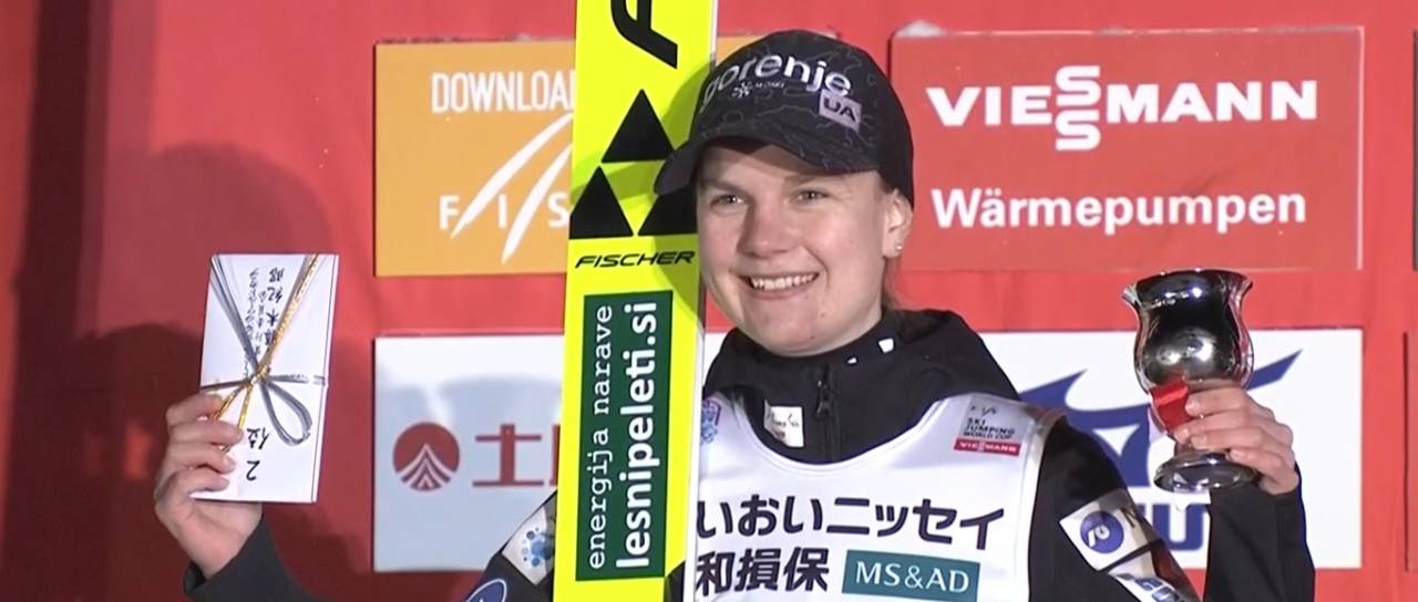 Štiriindvajsetletnica se je na skakalnici Okurajama razveselila prvih stopničk v letošnji sezoni, še 17. v karieri pa je stala na odru za najboljše tri. To so bile že 70. stopničke Slovenk v svetovnem pokalu.