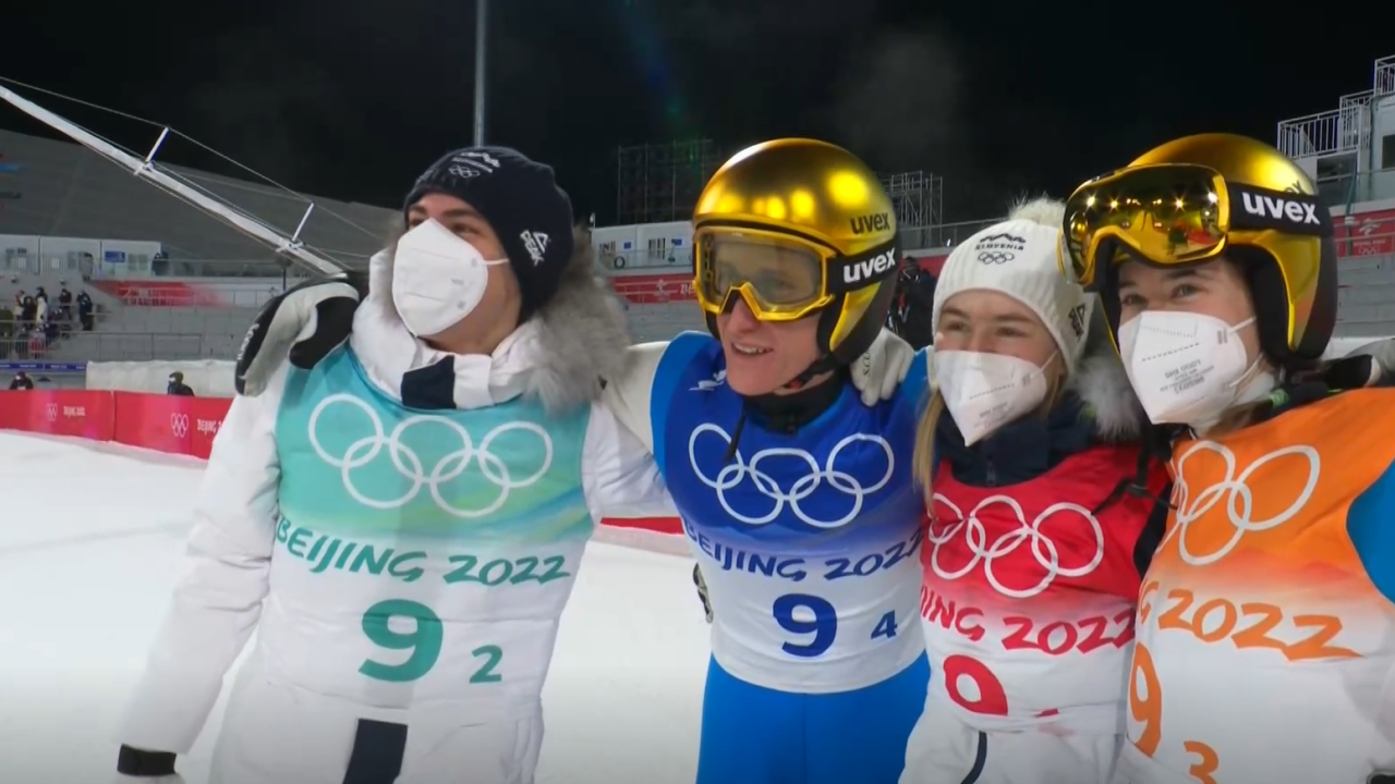 Slovenski skakalci so si danes na olimpijskih igrah v Pekingu priskakali zlato medaljo na tekmi mešanih ekip. Do medalje so tako prišli že zlata na letošnjih olimpijskih igrah Urša Bogataj, bronasta Nika Križnar, Peter Prevc in Timi Zajc.