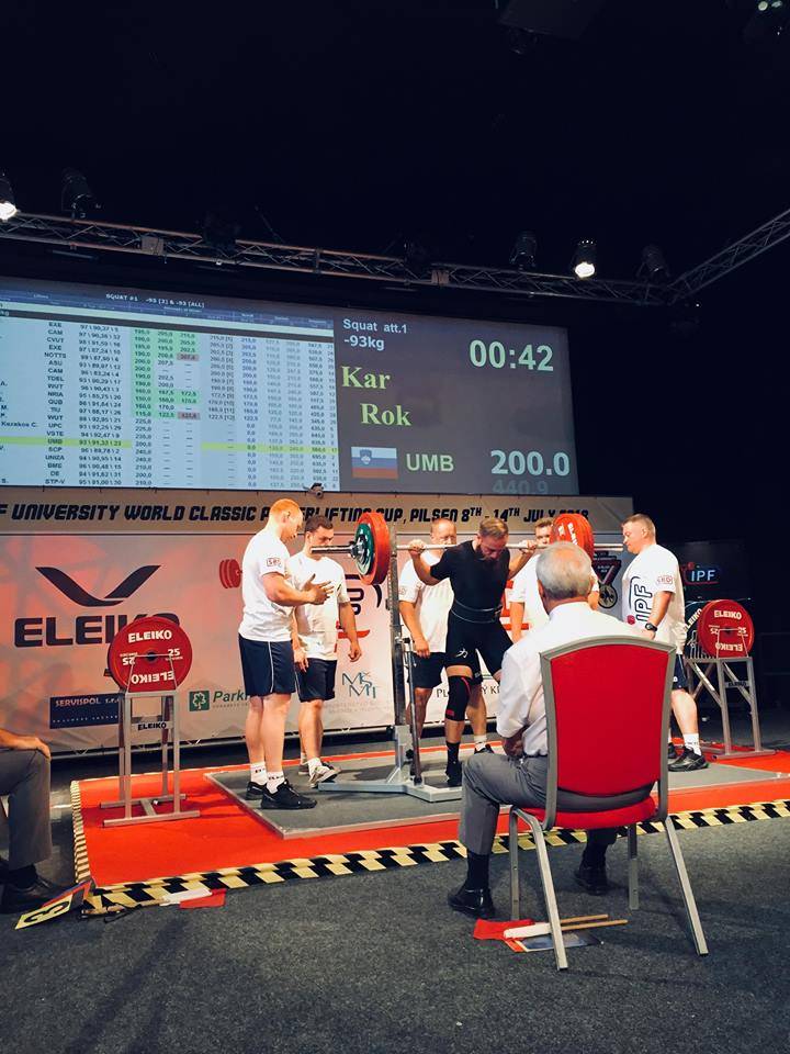 V isti kategoriji je svoje prve izkušnje na mednarodnih tekmovanjih nabiral tudi Rok Kar, 25-letni študent angleščine in zgodovine na Pedagoški fakulteti Univerze v Mariboru. Po treh uspešnih počepih in osebnem rekordu 215 kilogramov, je nekoliko slabše nadaljeval v potisku s prsi, kjer je zaradi težav z ramenom uspel dvigniti le 122,5 kilogramov – precej manj od svojega najboljšega dosežka. Vtis je skušal popraviti na mrtvem dvigu. V drugem poskusu je dvignil 257,5 kilogramov, v tretjem poskusu pa je napadal 265 kilogramov, kar je bilo nekoliko preveč. Tekmovanje je med 29 tekmovalci zaključil na 16. mestu s skupnim seštevkom 595 kilogramov.