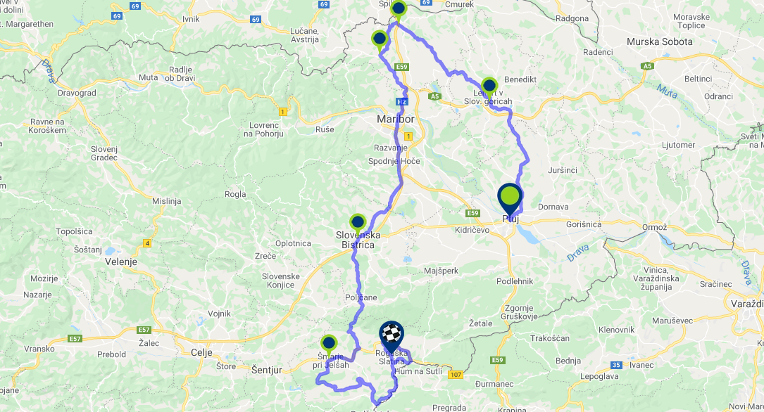 Etapa se bo začela na Ptuju, šla bo skozi Lenart v Slovenskih goricah, Šentilj, Zgornjo Kungoto, se nadaljevala v Mariboru, kjer bodo kolesarji prečkali Titov most, svojo pot bodo nadaljevali čez Slovensko Bistrico, Poljčane, Šmarje pri Jelšah, zaključila pa se bo v Rogaški Slatini.