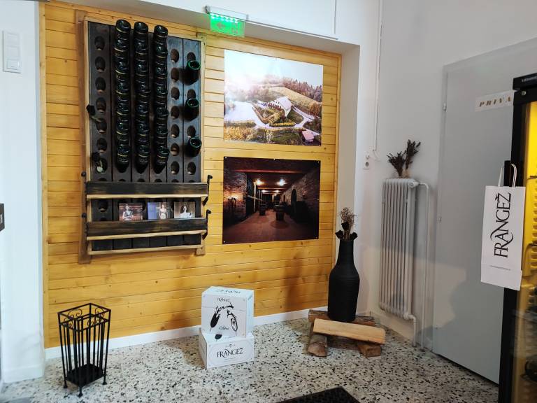 Očetov pečat je tako viden v sprejemnem prostoru, v katerem je, kot smo že zapisali, izpostavljena dolgoletna vinarska tradicija družine Frangež: