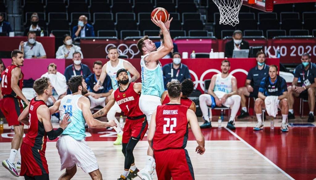 Košarkarji Slovenije nadaljujejo pohod proti olimpijski medalji. V četrtfinalu so premagali Nemčijo s 94:70 (25:14, 44:37, 66:54), njihov naslednji tekmec v četrtek pa bo zmagovalec dvoboja med Francijo in Italijo.