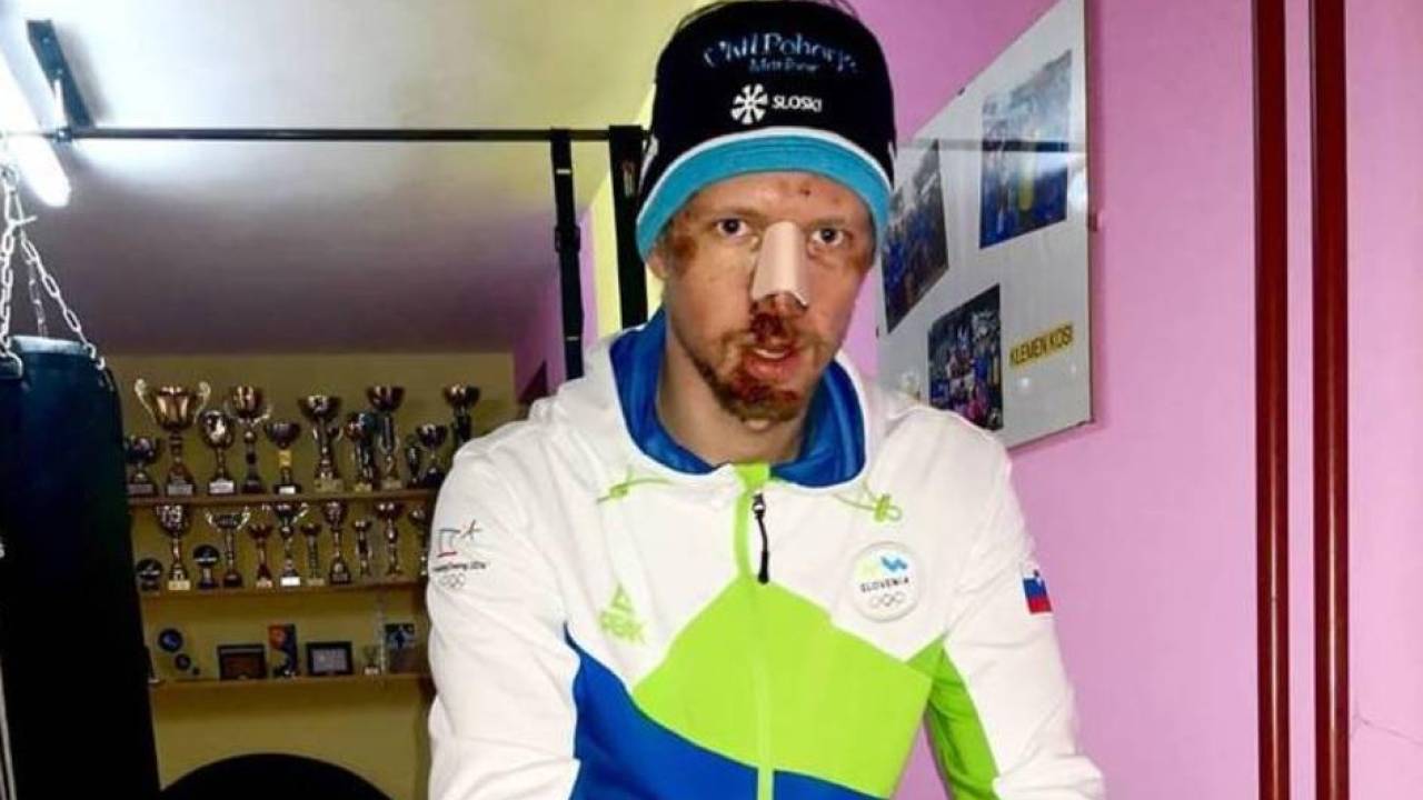 Mariborski smučar Klemen Kosi je prvič po grozljivem padcu v Bormiu svojim sledilcem pokazal poškodovan obraz in voščil srečno novo leto.