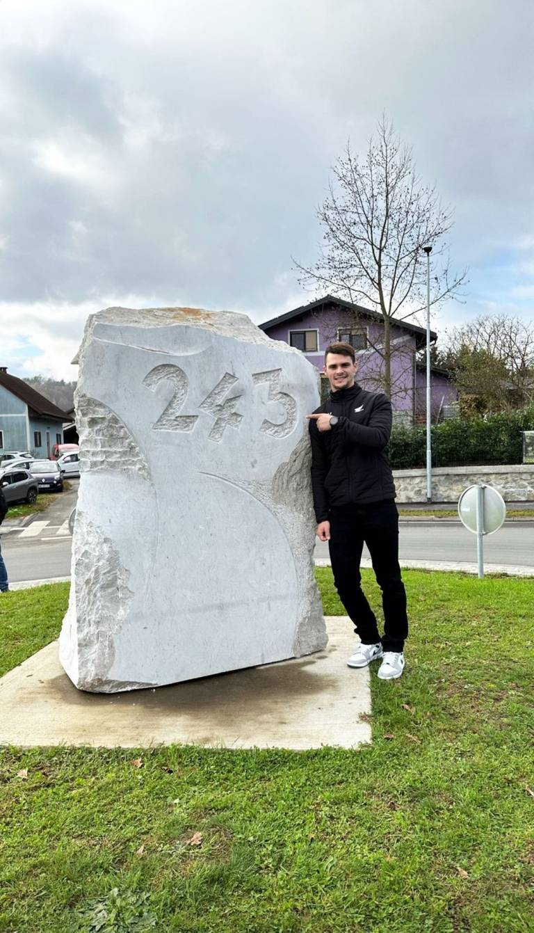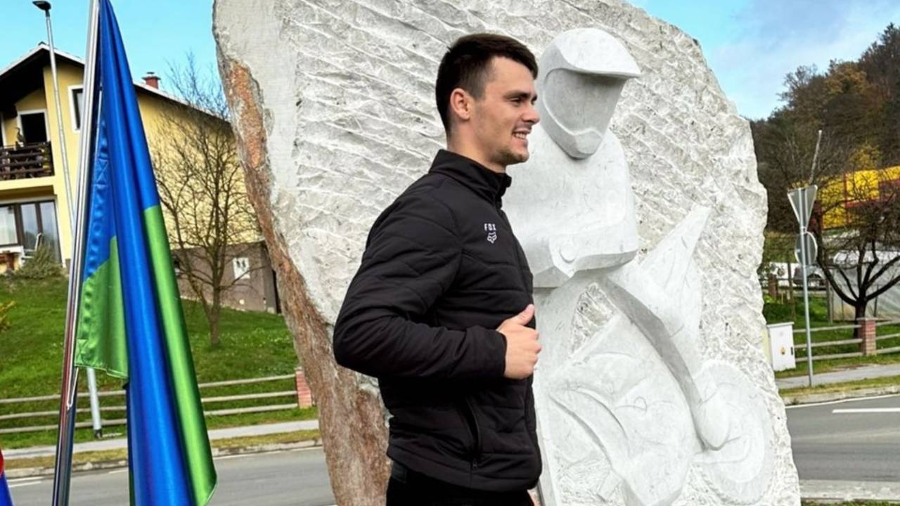»Hvala,« je na Instagramu zapisal svetovni prvak. Avtor skulpture je kipar Franci Černelč.