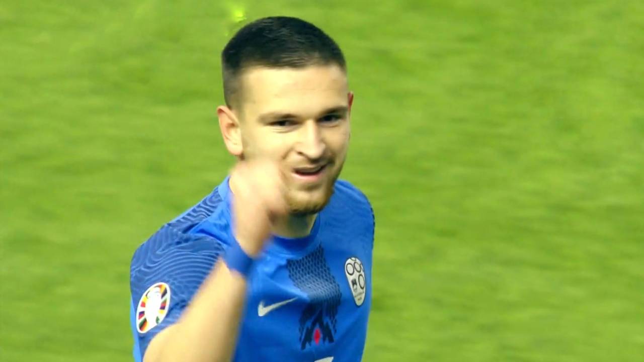 Napadalec Maribora je v 70. minuti zamenjal Žana Celarja, osem minut kasneje pa je krstni nastop v dresu članske izbrane vrste kronal z zadetkom za pomembno zmago Slovenije.