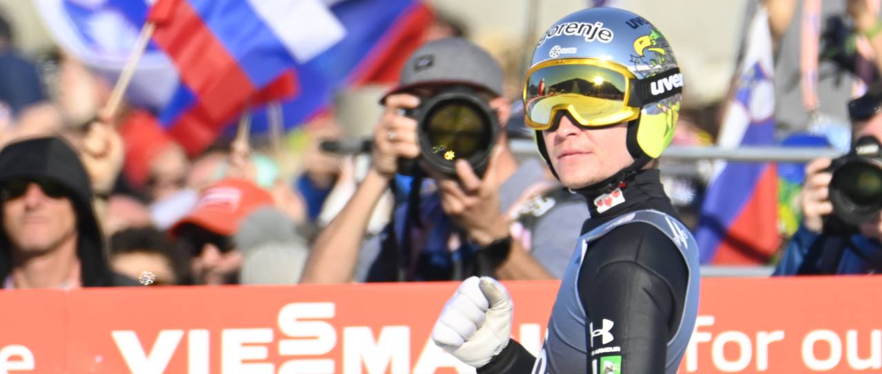 Slovenci so se pred 20.000 navijači pod Poncami sicer za zmago borili z Norvežani, a je Anže Lanišek uspešno odbil napad Halvorja Egnerja Graneruda in njegovih 242 metrov, ter poletel do 237,5 m.