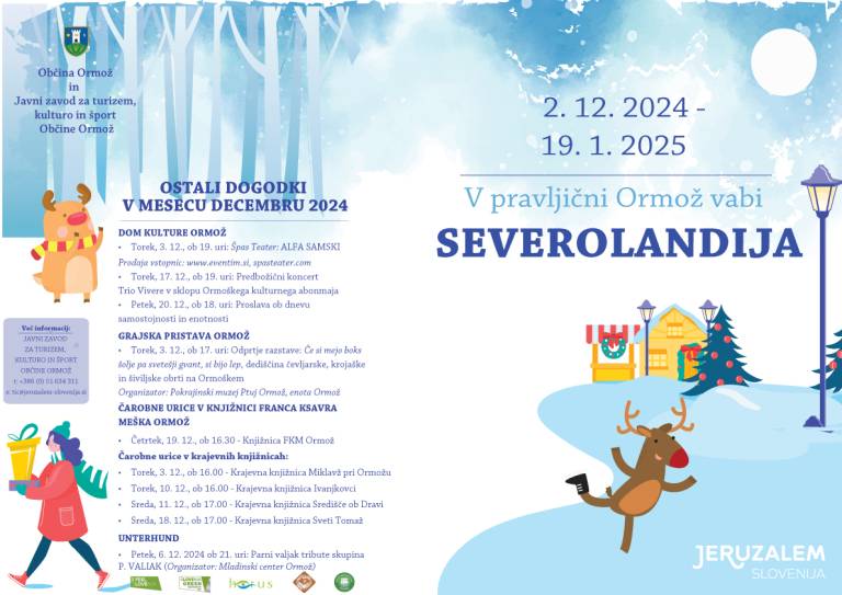 V tem obdobju pa se bodo v praznični deželi zvrstili tudi različni dogodki. Različne prireditve in dogodki bodo prav tako potekali v Domu kulture Ormož in v Knjižnici Franca Ksavra Meška Ormož.