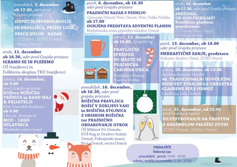 Ormož se v čarobnem decembru spremeni v deželo Severolandijo, ki vas vabi na drsališče in sprehod med čarobnimi lučkami ter prazničnimi stojnicami.