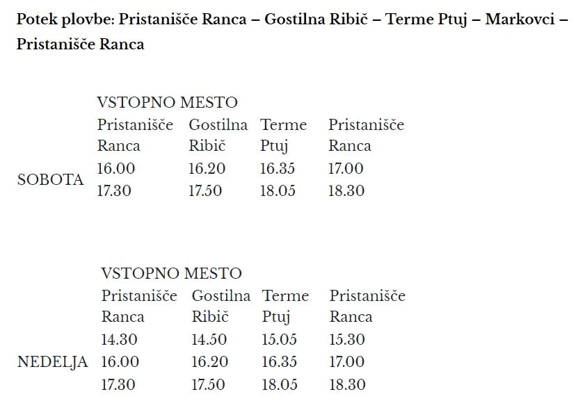 Sporočajo še, da v primeru slabega vremena in ob neprimernem vodostaju reke Drave vožnja z ladjico ni mogoča. Ob polni zasedenosti Čigra ne ustavi na vmesnih vstopnih mestih.