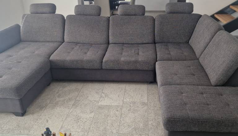 Prodamo dobro ohranjeno sedežno garnituro iz trpežne tkanine. Možno jo je postaviti skupaj ali v dveh ločenih delih (glej slike). Dimenzija skupaj: 330 x 230 x 185 Dimenzije ločeno: 245 x 185 in 85 x...
