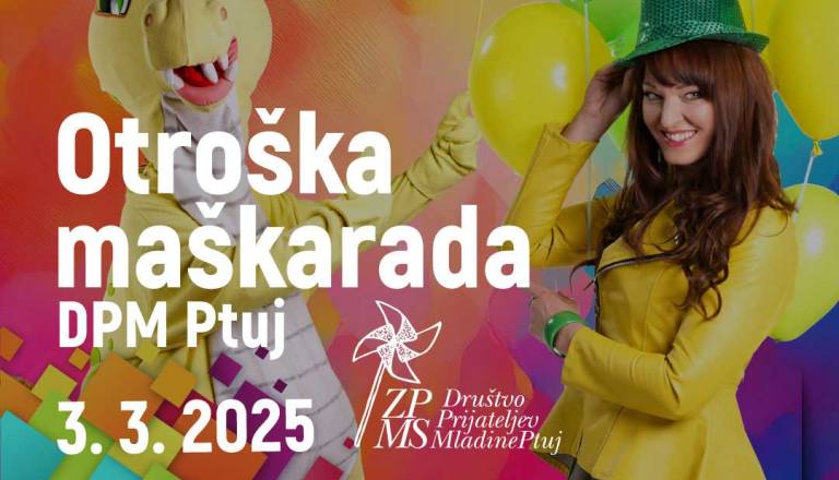 OTROŠKA MAŠKARADA DPM Ptuj (Društvo prijateljev mladine Ptuj) Pustno rajanje z Alenko Kolman in klovni DPM Ptuj, krofi, nagrade za najlepše maske, poslikava ...