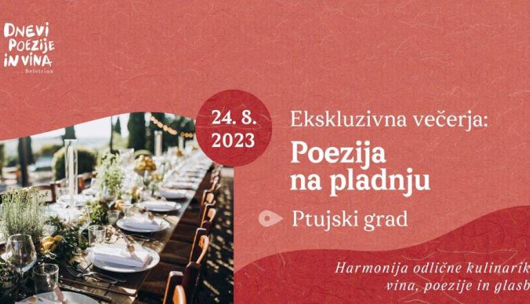 POEZIJA NA PLADNJU 24. avgust/četrtek/16.30/Ptujski Grad Harmonično popotovanje na večerji za dolgo mizo z odlično kulinariko, eleganco vina ter veličino ...