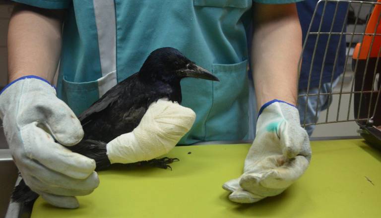 FOTO: Neznanec z zračno puško malo vrano in jo hudo poškodoval