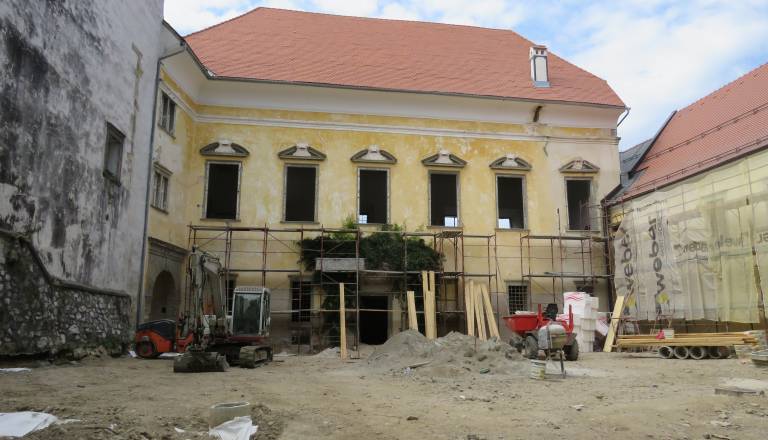 FOTO: Obnovitvena dela na gradu Borl v polnem teku, bazen že na pol zasuli