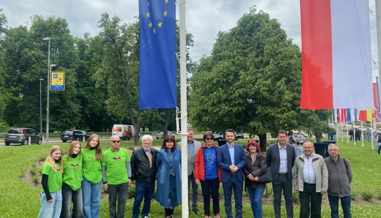 FOTO in VIDEO: Na Ptuju ob obletnici dvignili zastavo Evropske unije