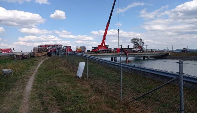 FOTO: Zakaj se je prevrnil tovornjak na mostu v Markovcih? Reševanje tovora še v petek