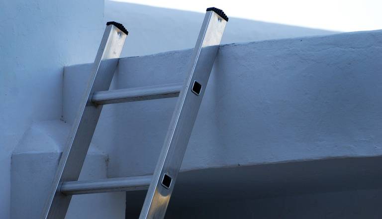 Huda delovna nesreča: Moški padel z lestve, njegovo življenje visi na nitki
