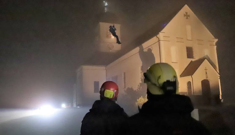 Lokalno | 0 komentarjev Takšnega Miklavževanja še niste videli! Z vrvjo so se spustili s 30-metrskega cerkvenega zvonika