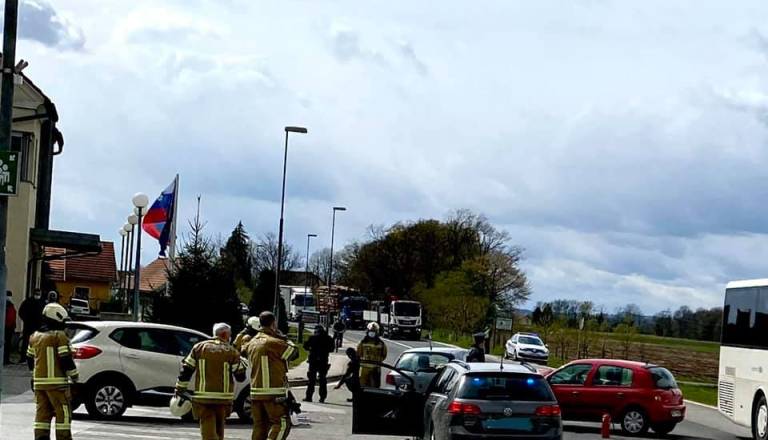 Huda prometna nesreča v Moškanjcih: Ena oseba ukleščena, trčila osebno in tovorno vozilo