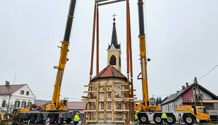 FOTO in VIDEO: V Prlekiji kar z dvigalom prestavili kapelico, poglejte, kako