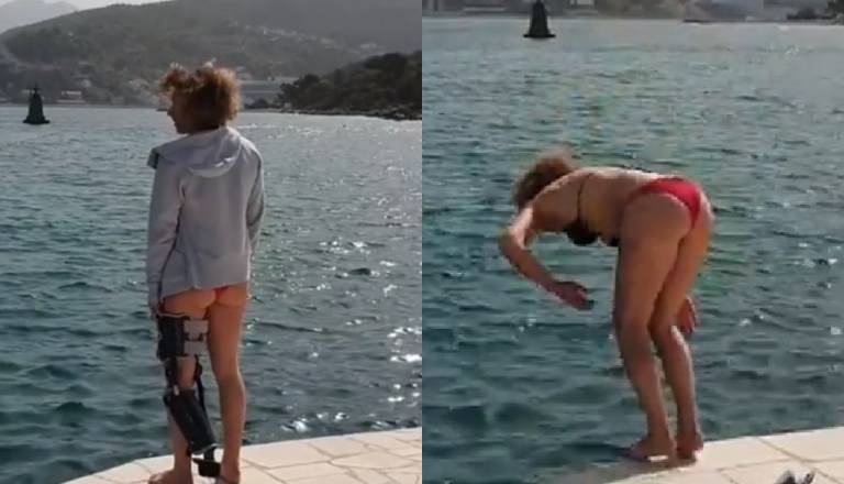 VIDEO: Ilka po dveh mesecih snela opornico in skočila v morje!