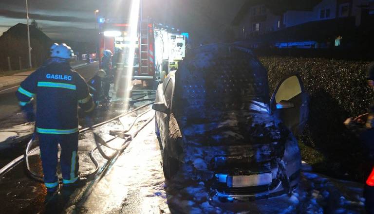 FOTO: V Gorišnici zagorel osebni avtomobil, promet je bil oviran
