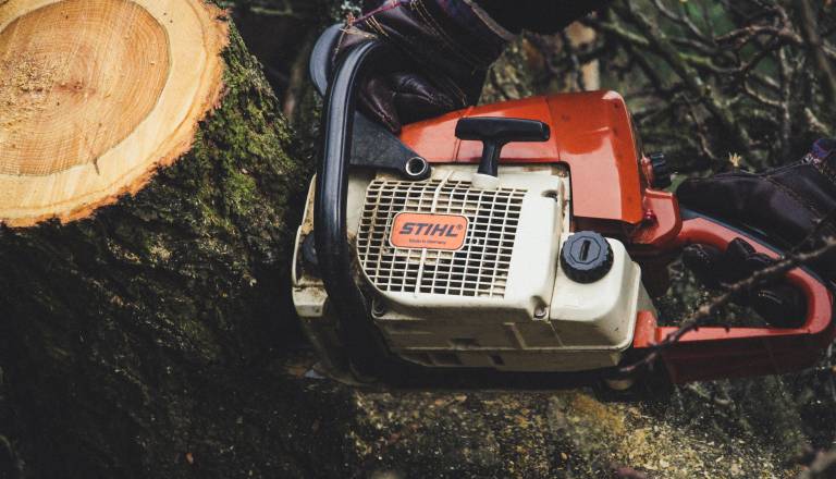 Moški se je pri obrezovanju dreves porezal z motorno žago