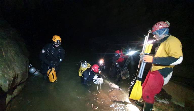 V Križni jami ujetih pet posameznikov. Posredujejo reševalci, potapljači in gasilci
