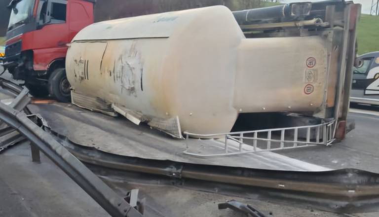 V nesreči na štajerski avtocesti zaradi telefona prevrnil cisterno tovornjaka