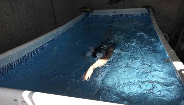 FOTO: V času koronavirusa obetavna štajerska plavalka vzdržuje formo v domači garaži