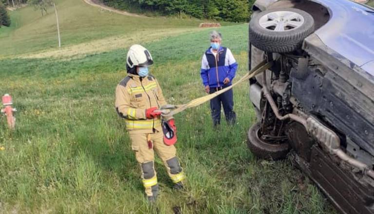 V Halozah avto pristal v obcestnem jarku, poškodovano osebo odpeljali v bolnišnico