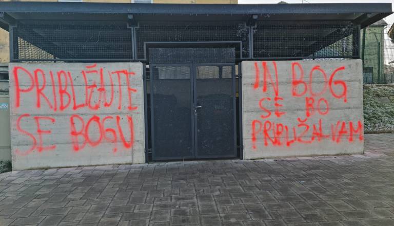 Vandali pročelje cerkve popisali z žaljivim napisom