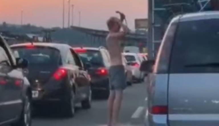 VIDEO: Ko zašvicaš med čakanjem na vstop na Hrvaško … Stuširal se je kar sredi avtoceste