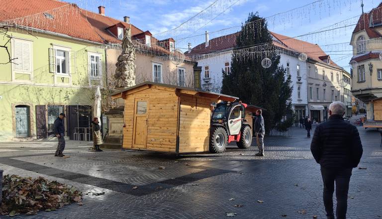 FOTO in VIDEO: Na Mestni trg pripeljali praznične hiške, iz katerih bo že čez nekaj dni zadišalo
