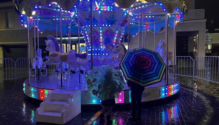 FOTO in VIDEO: Na Ptuju zaživel čarobni vrtiljak, z njim so se kljub dežju že zapeljali prvi otroci